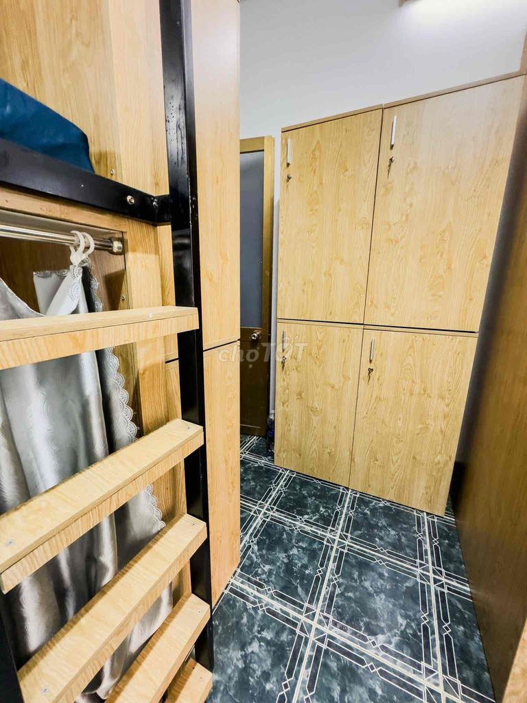 | Nội thất | Đầy đủ: máy lạnh, giường riêng tư có rèm, tủ locker, bếp, tủ lạnh, máy giặt | Thường nội thất cơ bản hoặc không có máy lạnh |