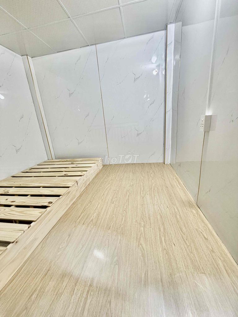 Không gian sáng, tường ốp gạch sạch sẽ, có máy lạnh, WC riêng trong phòng và wifi mạnh. Khu vực sinh hoạt được bố trí hợp lý, gác cao ráo, rộng có thể làm nơi ngủ hoặc để đồ giúp tối ưu diện tích.