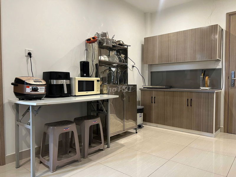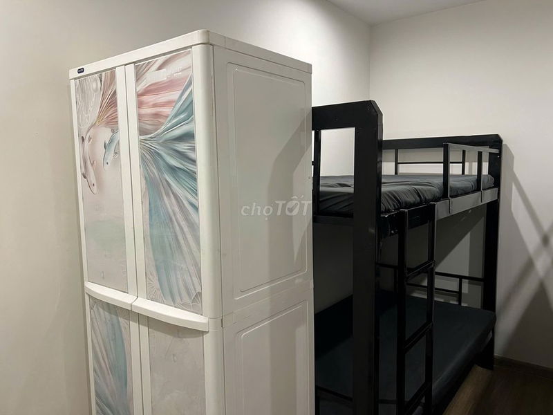 Phòng được trang bị đầy đủ nội thất gồm giường tầng, tủ quần áo, máy lạnh, máy giặt, máy nước nóng, bếp và các dụng cụ bếp cũng như máy lọc nước, tạo điều kiện thuận lợi cho sinh hoạt. Tuy nhiên, giá chưa bao gồm phí quản lý và điện nước, điều này cần được lưu ý để tính toán tổng chi phí thực tế.
