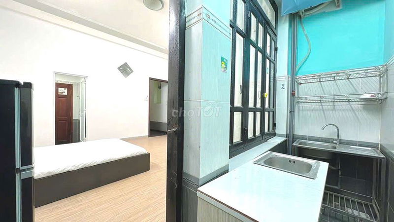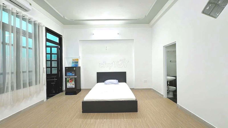- Phòng có diện tích rộng 35 m², khá thoải mái so với phòng trọ phổ biến khoảng 20-25 m² tại TP HCM.
