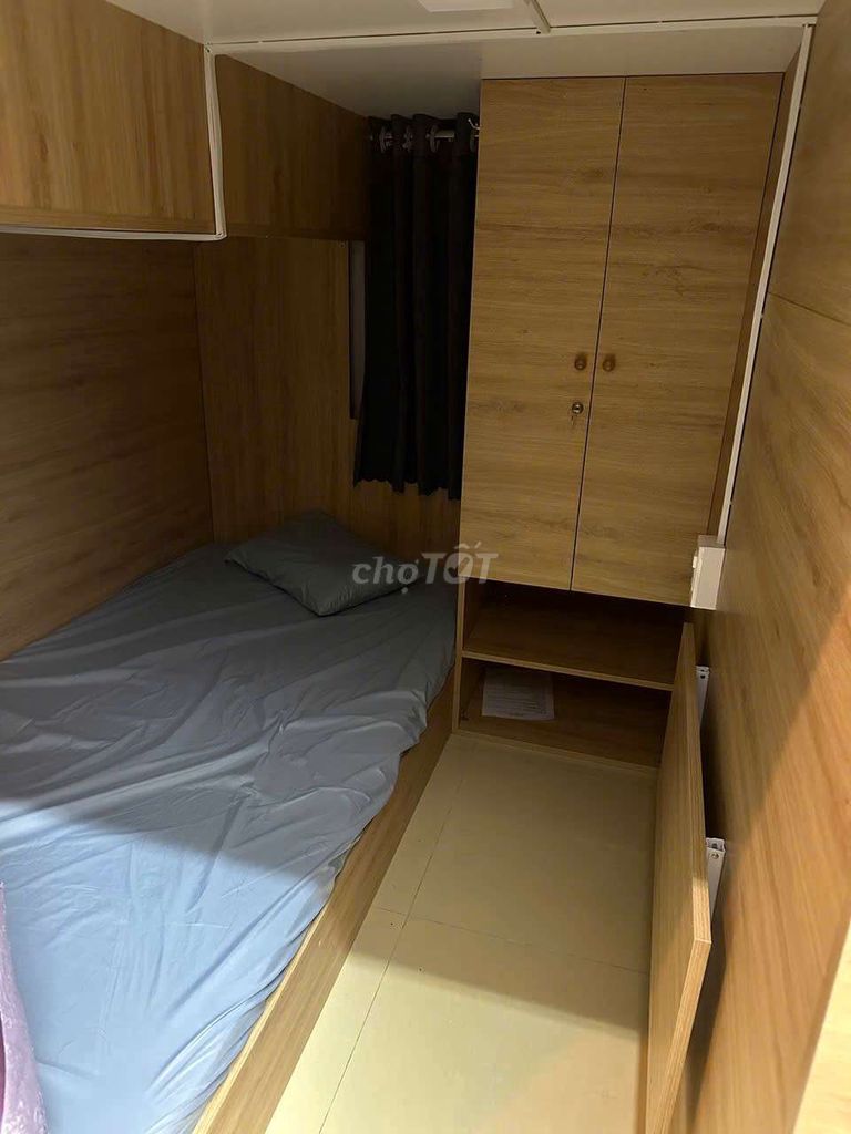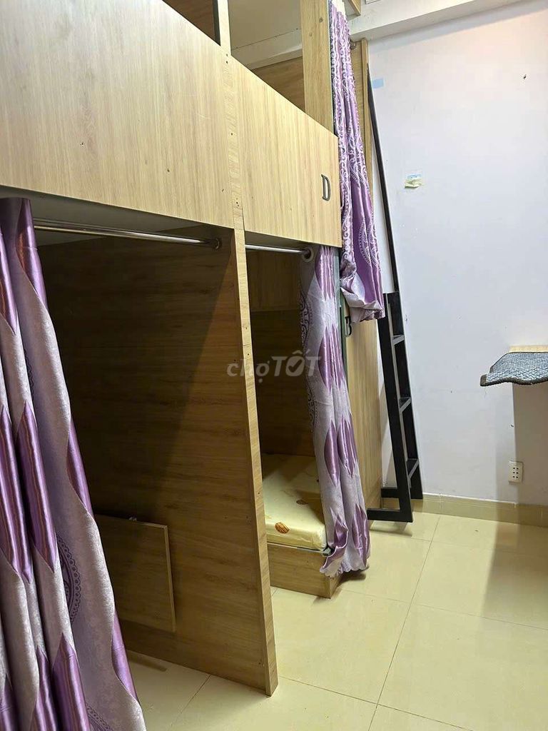 | Diện tích | 25 m² (phòng có 4 giường) | 15 – 30 m²/phòng trọ dạng ghép | Diện tích khá rộng so với phòng ghép thông thường, tạo sự thoải mái hơn. |