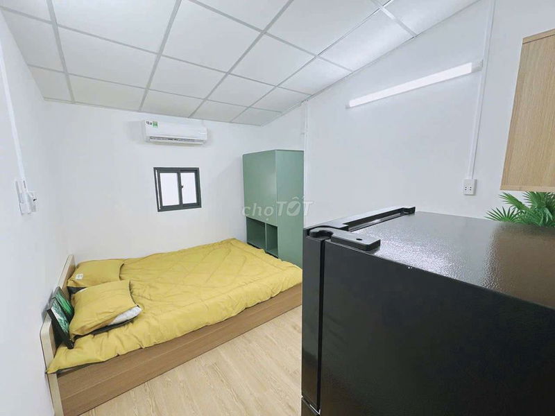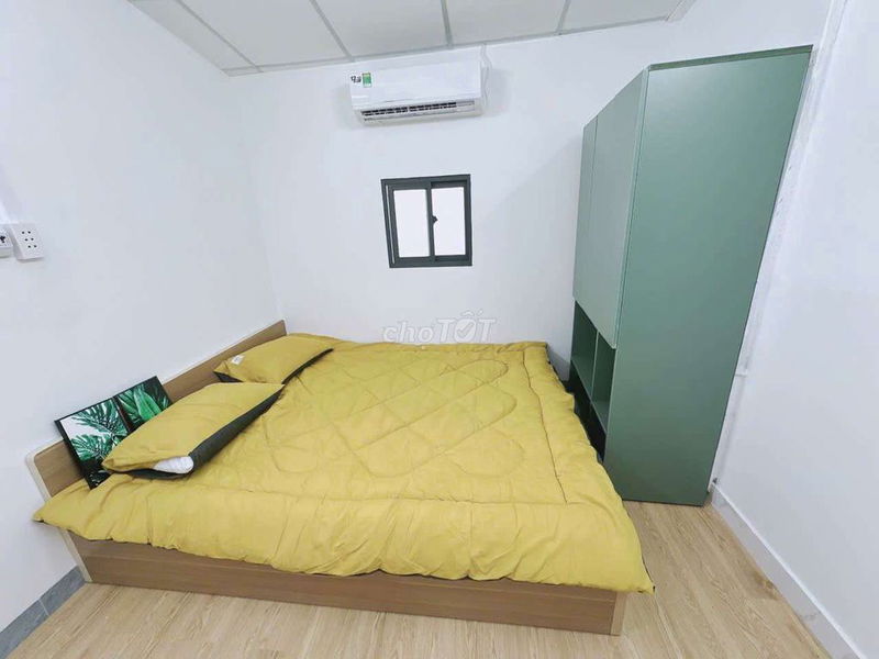 Full nội thất mới 100%: Giường, nệm, tủ áo, máy lạnh, tủ lạnh, kệ bếp, lavabo, máy giặt.