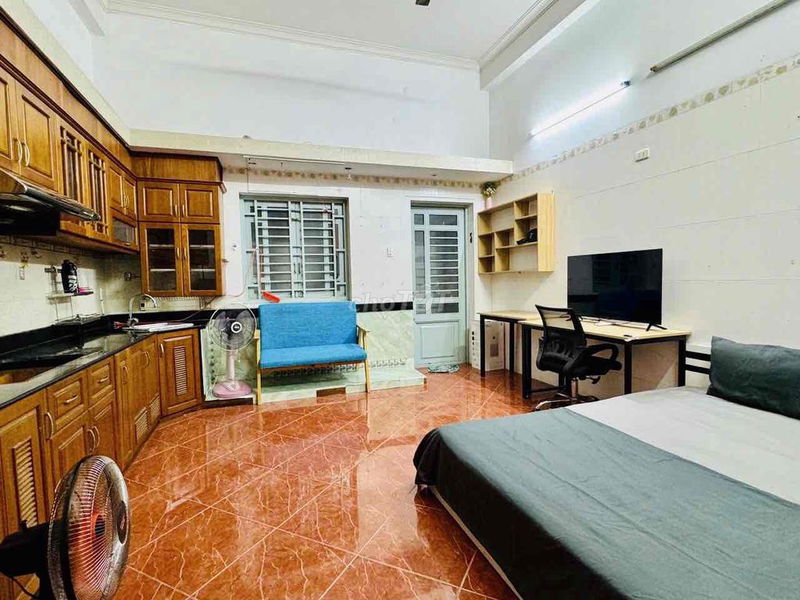 Diện tích 30m² với ban công và giếng trời cũng là điểm cộng giúp không gian thông thoáng, phù hợp với người làm việc gần sân bay hoặc người có nhu cầu thuê ngắn hạn.