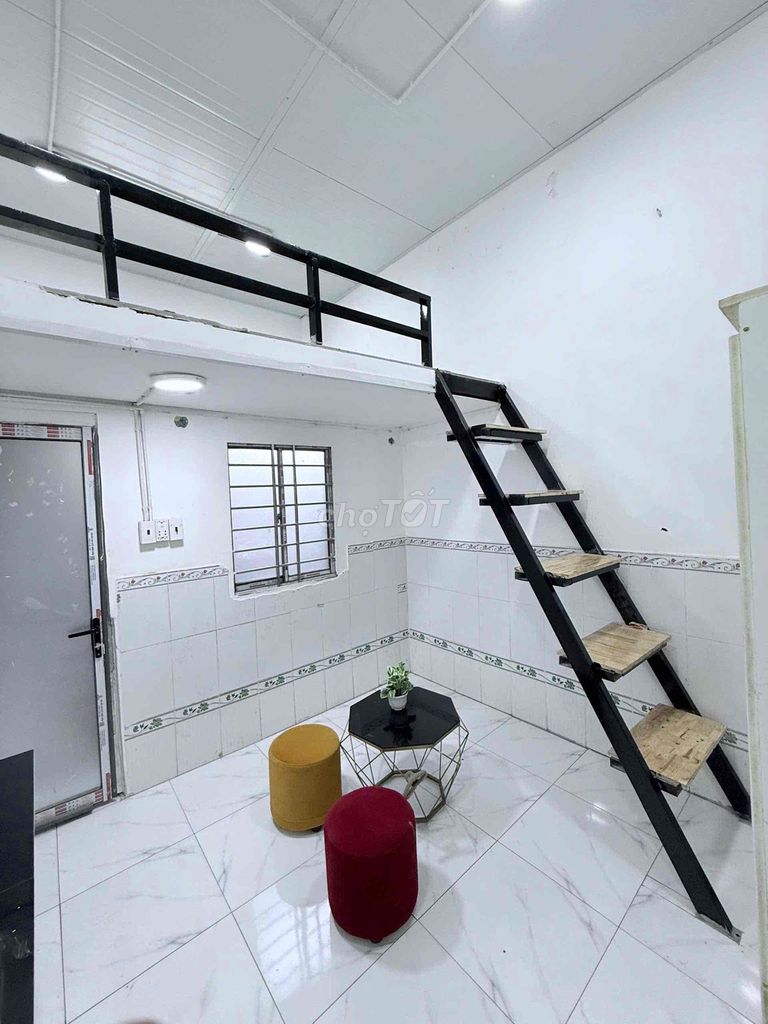 Phòng có diện tích tương đối rộng so với mặt bằng chung (30m²) và được trang bị nội thất đầy đủ. Vị trí tại trung tâm Bình Thạnh, gần các trường đại học lớn như HUTECH, GTVT, Hồng Bàng và cách ga metro 50m giúp việc di chuyển thuận tiện, phù hợp với sinh viên hoặc người đi làm trẻ tuổi.