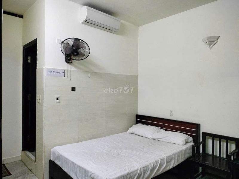 - Trang bị đủ tiện nghi: Điều hòa, nước nóng, tủ lạnh mini, quạt treo tường và wifi miễn phí là điểm cộng lớn, đảm bảo ở thoải mái với giá thuê hợp lý.