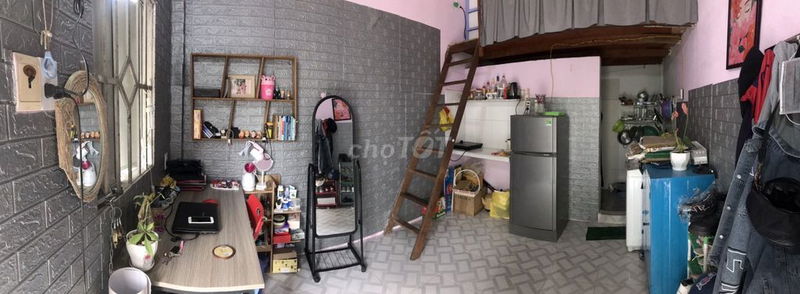 - Hẻm có sân rộng, có gác lửng giúp tăng diện tích sử dụng, không gian sống thoáng hơn các phòng trọ kiểu truyền thống.