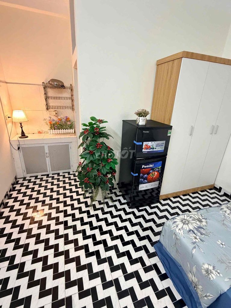 - Phòng có diện tích vừa phải (20m²), phù hợp với nhu cầu tối giản.