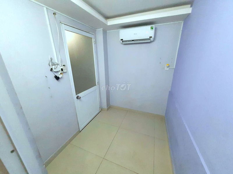 Phòng ở tầng 1 trong hẻm bê tông 4m, xe ba gác ra vào thoải mái, có sân thượng dùng chung giúp tăng giá trị sử dụng. Tuy nhiên, phòng chỉ 10 m², không có bếp riêng và không cho nấu ăn, giới hạn đối tượng thuê. Nhà trống, không kèm nội thất nhiều ngoài máy lạnh và tủ lạnh mini.