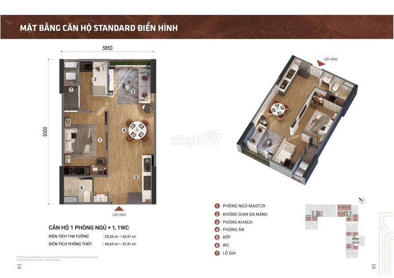 | Diện tích căn hộ (m²) | 60 | 50 – 70 | Phù hợp với nhu cầu gia đình nhỏ, không quá lớn |