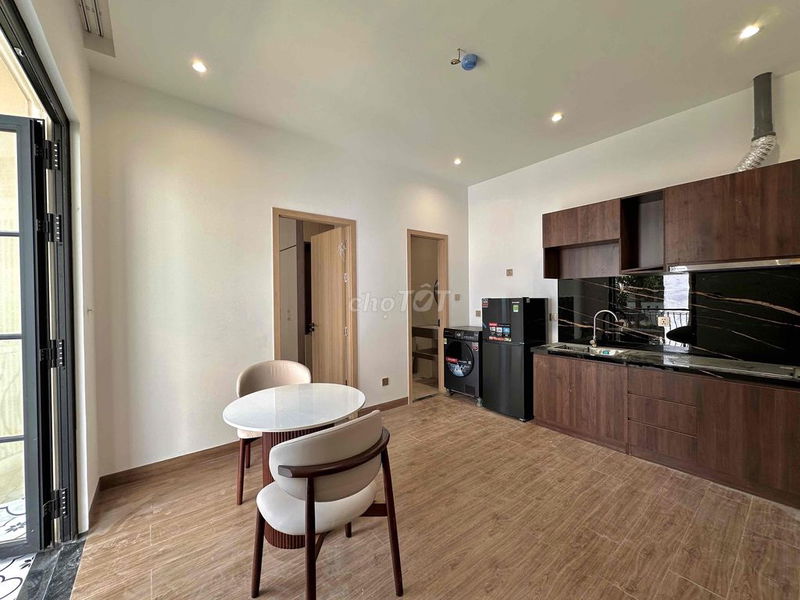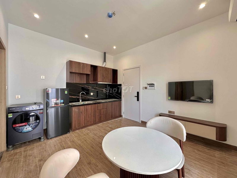 Căn hộ dịch vụ mini 1 phòng ngủ diện tích 45m² phù hợp với đối tượng khách thuê là nhân viên văn phòng, chuyên gia nước ngoài hoặc gia đình nhỏ. Nội thất cao cấp, máy giặt riêng, ban công thoáng mát là điểm cộng giúp tăng sức hấp dẫn và giá thuê.