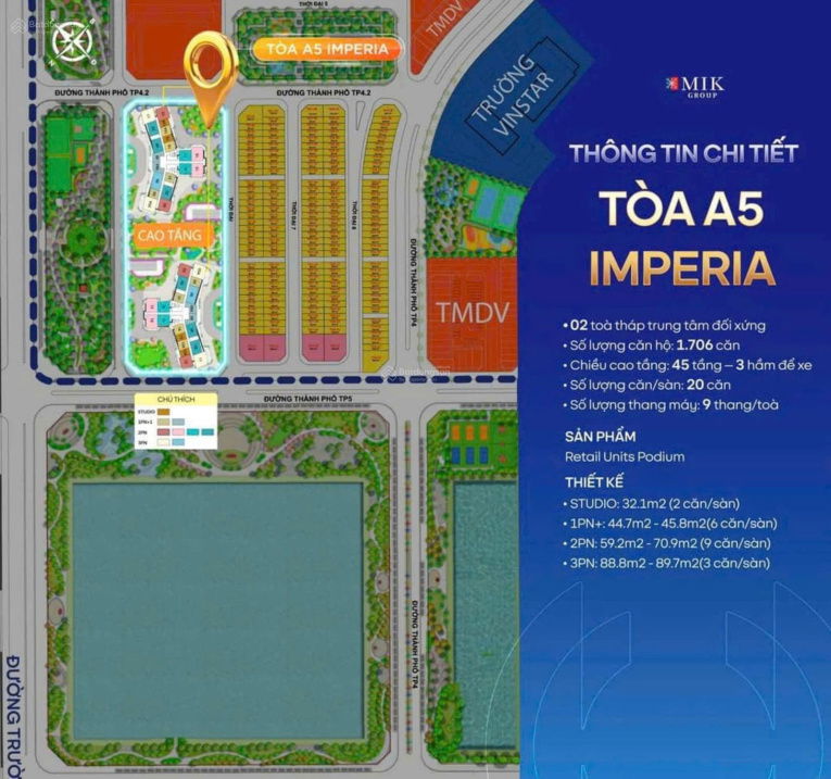 + Stu: Diện tích: 31-33m² - Giá bán: 3,4 tỷ
