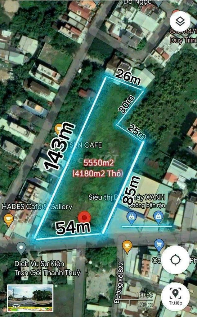 Diện tích 5550 m² 100 – 1000 m² (thường) Lô đất lớn hiếm có, phù hợp đầu tư dự án quy mô