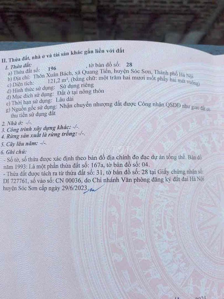 | Quang Tiến – Sóc Sơn (bài đất) | 121 | 33 | 3,993 | Đất thổ cư, sổ đỏ, hẻm xe hơi, gần tiện ích |