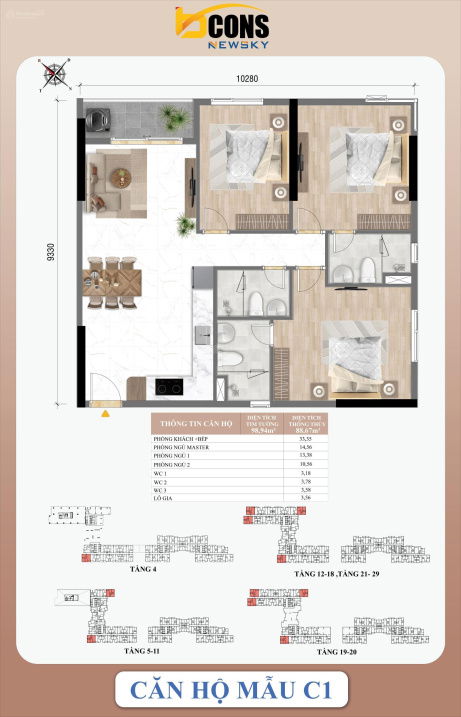 Mức giá 3,69 tỷ đồng cho căn hộ 3 phòng ngủ, 2 phòng vệ sinh, diện tích 75 m² tại Bcons NewSky được đánh giá là phù hợp trong bối cảnh thị trường hiện tại. Khu vực Thuận An, Bình Dương đang phát triển nhanh chóng nhờ vào vị trí kết nối thuận tiện với TP.HCM và hạ tầng được đầu tư đồng bộ. Dự án của chủ đầu tư Bcons cũng nổi bật về pháp lý minh bạch, tiến độ xây dựng rõ ràng và chính sách thanh toán linh hoạt, giúp khách hàng có thể yên tâm khi đầu tư hoặc an cư.
