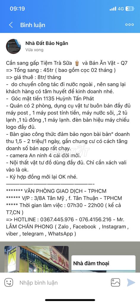 Quận 7 là khu vực phát triển năng động với nhiều khu dân cư, chung cư cao cấp, nhu cầu kinh doanh dịch vụ ăn uống, đặc biệt là trà sữa và bán ăn vặt khá cao. Mức giá thuê mặt bằng trung bình tại các tuyến đường chính và hẻm lớn khu vực này thường dao động từ 7 – 12 triệu đồng/tháng cho diện tích tương đương, tùy vị trí cụ thể, mặt tiền, và trang thiết bị đi kèm.