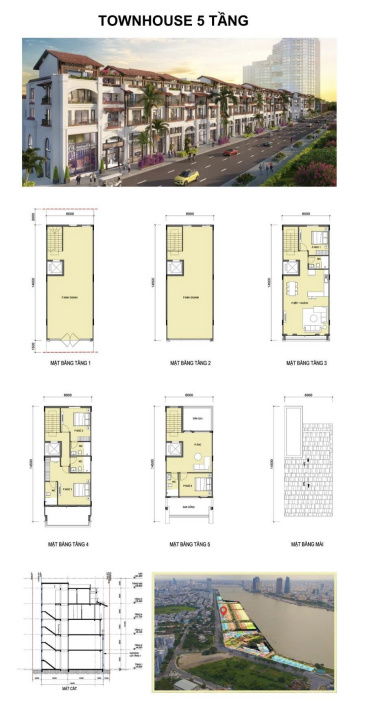 - Diện tích: 108m² - 344.9m², ngang 6 - 21m.