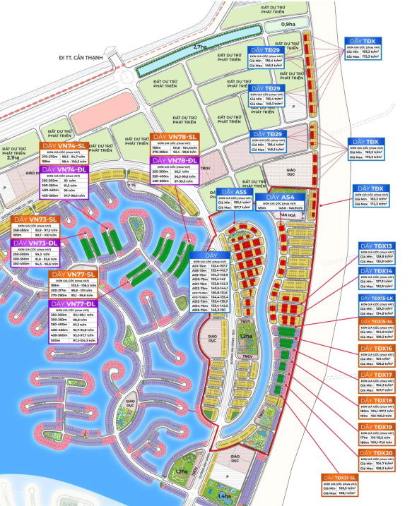 - Nhà phố liền kề: Diện tích từ 65 m² - 150 m²: Giá từ 8 tỷ.