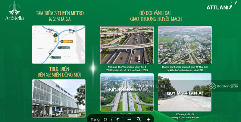 Artstella tuy mang tên TP. Hồ Chí Minh trong phần mô tả nhưng thực tế tọa lạc tại Bình Dương – một tỉnh lân cận với tốc độ phát triển nhanh về hạ tầng và công nghiệp, đặc biệt là Dĩ An. Đây là một khu vực được đầu tư mạnh về giao thông kết nối với TP. Thủ Đức – TP. Hồ Chí Minh, đặc biệt là tuyến Metro và các trục đường lớn như Xa lộ Hà Nội, Vành đai 3 – đây là điểm cộng lớn tạo tiềm năng tăng giá căn hộ trong tương lai.