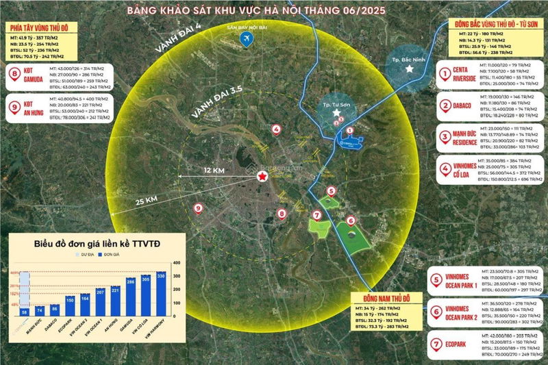 | Khu đô thị Đình Bảng | 180 – 220 | 12 – 15 | 66 – 70 | Vị trí trung tâm Bắc Ninh, hạ tầng đang phát triển |