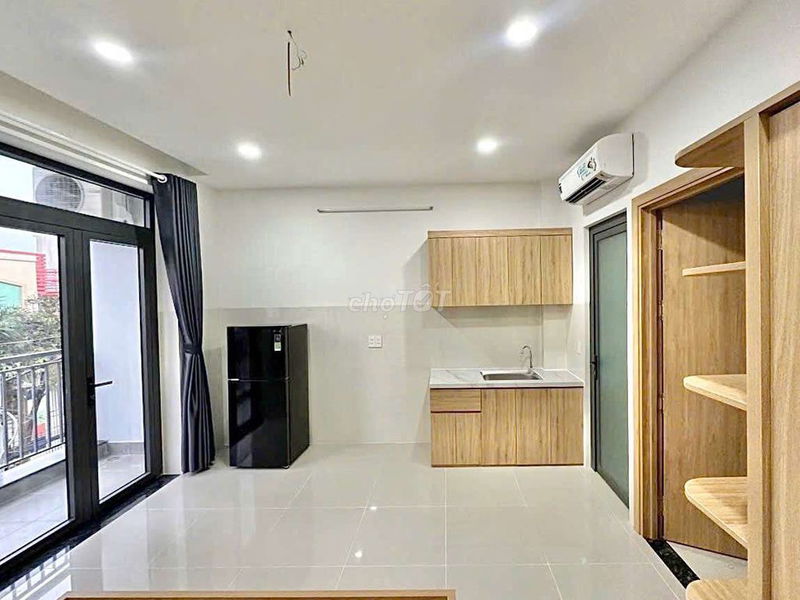 -Nội Thất: ban công riêng, cửa sổ lớn. Giường, hệ tủ bếp trên - dưới, tủ lạnh và hệ thống đèn LED âm trần.