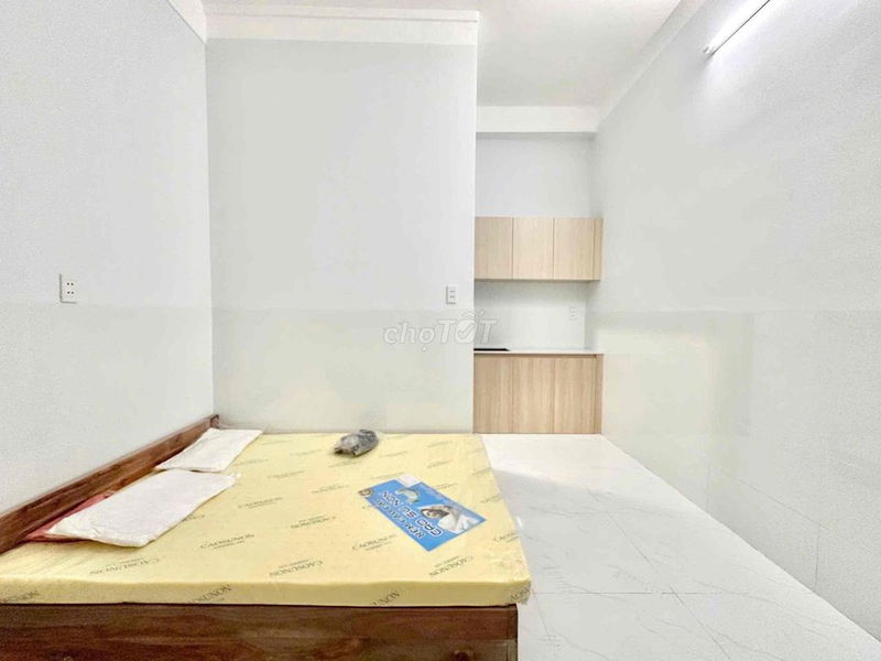 Về kết cấu, phòng có nội thất cơ bản gồm giường nệm, tủ đồ, tủ bếp, máy nước nóng lạnh, giúp người thuê tiết kiệm chi phí mua sắm ban đầu. Khu vực an ninh được đảm bảo với camera 24/7 và có chỗ để xe miễn phí, đây là điểm cộng lớn trong thị trường phòng trọ hiện nay.