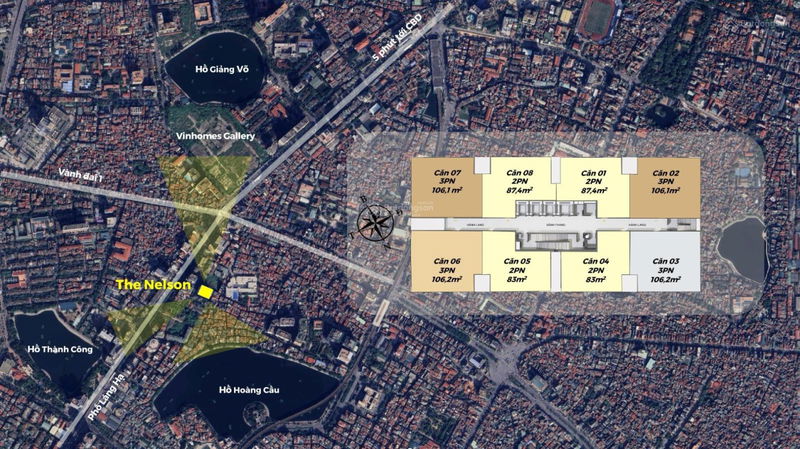| Tiêu chí | The Nelson (Căn 2PN, 87,4m²) | Căn hộ tương tự khu vực Ba Đình và trung tâm Hà Nội |