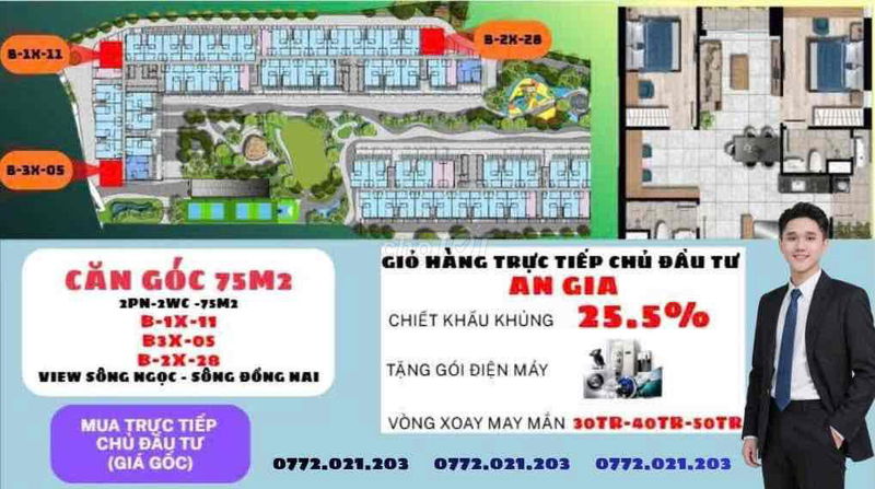 Dựa trên thông tin cung cấp, căn hộ có diện tích 75 m², thuộc loại hình chung cư với 3 phòng ngủ tại phường Bình An, TP Dĩ An, Bình Dương. Giá chào bán là 2,5 tỷ đồng, tương đương với khoảng 33,33 triệu đồng/m², căn hộ chưa bàn giao và được giao dịch bằng hợp đồng mua bán.