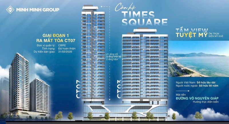 Với mức giá 7 tỷ đồng cho căn hộ diện tích 45m² (Studio) tại dự án Times Square Đà Nẵng, tọa lạc trên mặt tiền đường Võ Nguyên Giáp – khu vực được đánh giá là đắt giá và sầm uất bậc nhất Đà Nẵng, mức giá này thuộc phân khúc cao so với mặt bằng chung căn hộ studio trên thị trường Đà Nẵng hiện nay. Tuy nhiên, mức giá này có thể được xem là hợp lý trong trường hợp căn hộ sở hữu vị trí “kim cương” ven biển, thiết kế sang trọng, pháp lý sở hữu lâu dài cùng các tiện ích và tiềm năng sinh lời từ du lịch nghỉ dưỡng.