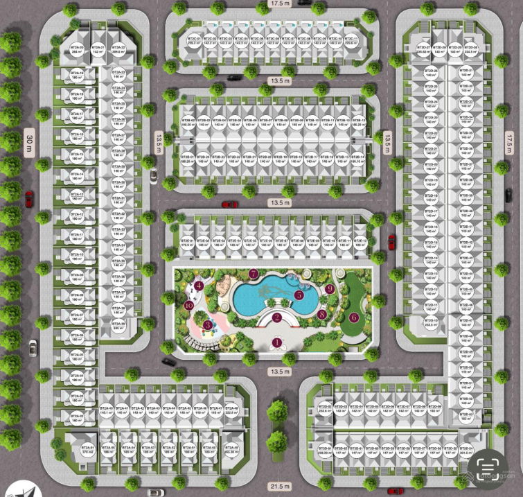 - Tiện ích: Chuỗi công viên nội khu, quảng trường ánh sáng, khu thể thao liên hoàn, gần các trường quốc tế và trung tâm thương mại lớn.