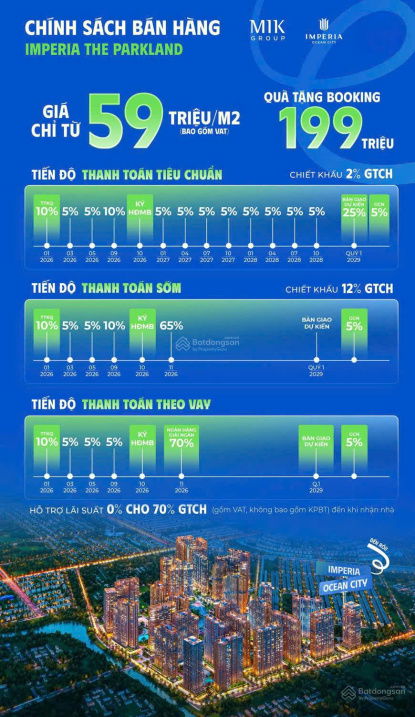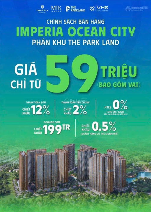 | The Parkland – Imperia Ocean City | Nghĩa Trụ, Văn Giang, Hưng Yên | 59 (tham khảo) | Căn hộ cao cấp | Giá chào bán giai đoạn đầu, có VAT |