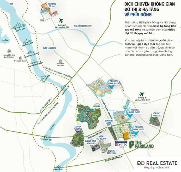 - Vị trí phát triển mới: The Parkland thuộc khu vực Văn Giang, Hưng Yên đang trong quá trình phát triển hạ tầng và đô thị, giá đất nền và căn hộ vẫn thấp hơn so với các đô thị đã phát triển hoàn chỉnh.