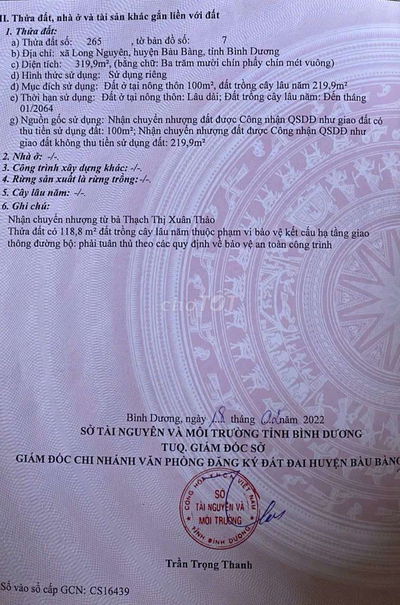 - Quận, Huyện: Huyện Bàu Bàng